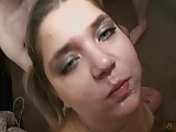Nacktes Mädchen bei einer Orgie mit zwei Männern